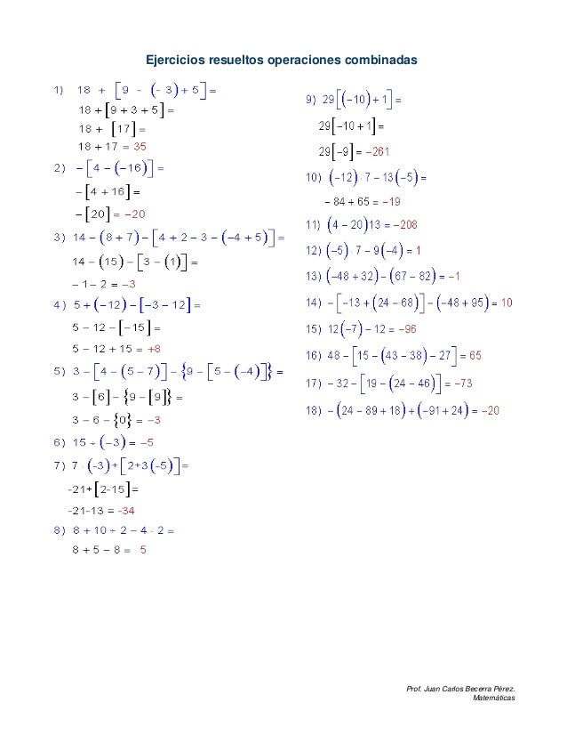 Ejercicios Resueltos Operaciones Combinadas De Numeros Enteros